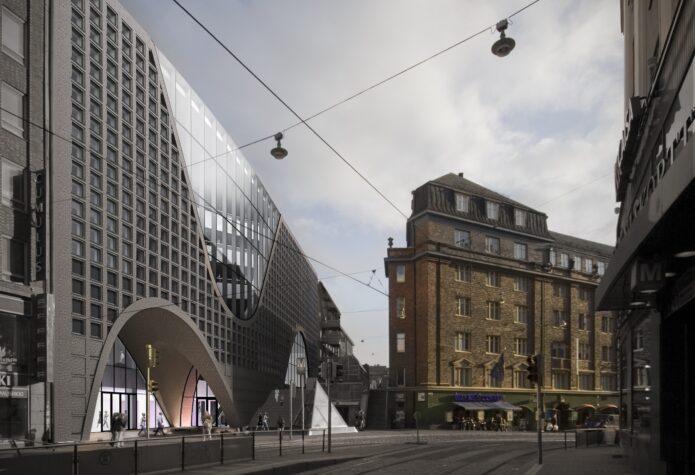 Located in the centre of Helsinki, the construction bears significance not only for its use, but also for its appearance. Commanding views all the way to the central railway station from its boldly designed, large arched windows, the new library is also shaping the architectural look of the city. Indeed, while the new 11-storey library stands on the location of an office and parking building erected in the 1970s, only the underground floors and the main entrance level, notably situated on Fabianinkatu next to NIB’s headquarters, remain of the old building.