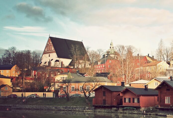 When entering Finland’s second oldest city, Porvoo, from west by the main bridge crossing the city river, the stark contrast between old and new is the first thing one notices. On your left, an amazing view of the old, medieval town opens up, with old wooden houses and the white stone church from the 15th century dominating the scene. But looking to the right from the bridge, where the modern city centre takes over, one is instantly brought back to reality.